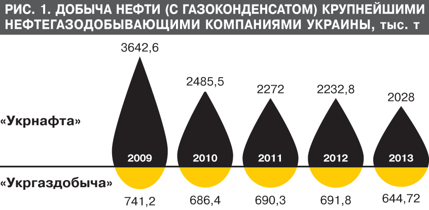 Пульс нефтегазодобычи в Украине напрямую зависит от деятельности компаний с крупным государственным участием - "Укрнафты" и "Укргаздобычи", которые формируют до 90% производства в этой отрасли. Ранее ZN.UA неоднократно отмечало плачевную производственную динамику обеих компаний и их структур. Так, "Укрнафта" за последние пять лет снизила добычу нефти на 44,3%, природного газа - на 35,4% (см. рис. 1, 2). По "Укргаздобыче" эти цифры составляют 13,1 и 1% соответственно.
