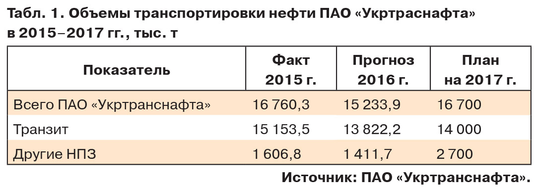 Сняв с повестки дня субъективные факторы, "Укртранснафта" осталась наедине с факторами объективными, в частности с меняющейся конъюнктурой нефтяного рынка, которая пока играет против компании. Однако есть основания полагать, что та же конъюнктура в ближайшее время может дать новый импульс украинской нефтепроводной системе. В 2016 г. объемы транспортировки нефти упали на 9,1%, или более чем на 1,5 млн т.