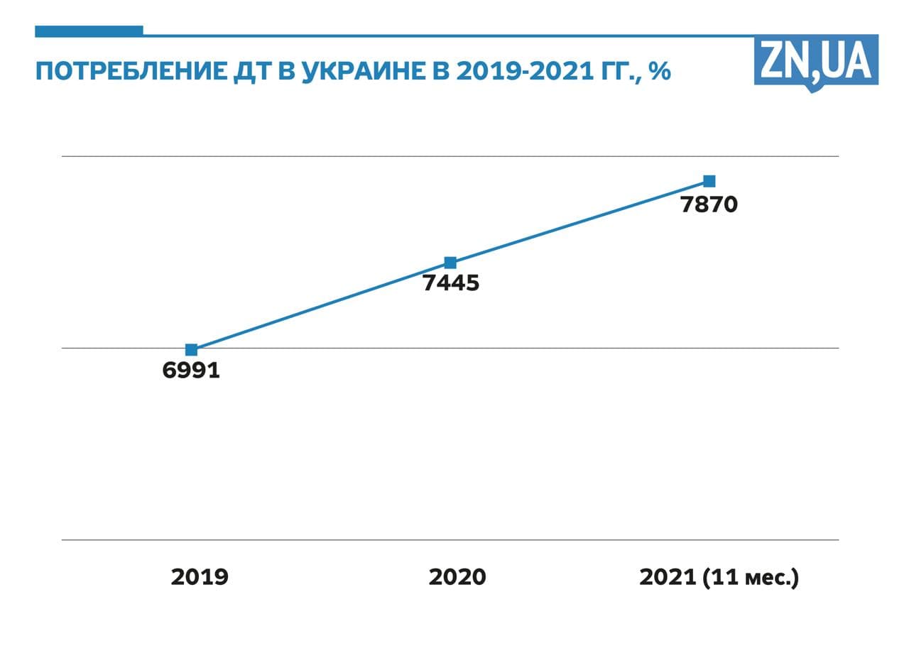 Несмотря на рост топливных цен, Украина наращивает потребление. Потенциал страны очень велик. Судите сами: Польша, которая по численности населения сопоставима с нами, потребляет в год более 22 млн тонн дизтоплива, тогда как Украина — 8 млн.