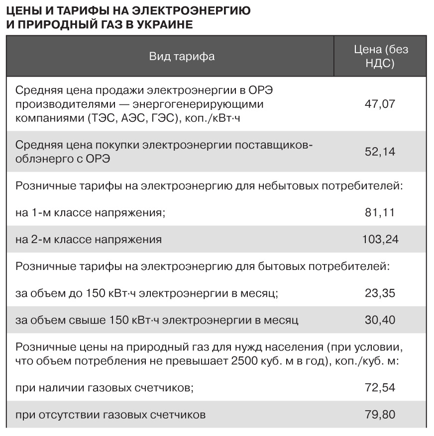 Но вернемся к вопросу, непосредственно касающемуся каждого домохозяйства, а именно - к ценам на электроэнергию, природный газ, тепло- и водоснабжение для населения. Вследствие административного "регулирования" сформировалась искаженная тарифная система (см. табл.). Для населения тарифы на электроэнергию почти вдвое меньше, чем для остальных потребителей, и обеспечивают возмещение только около 30% себестоимости на уровне 3 центов США за киловатт-час. Ценовая диспропорция приводит к перекладыванию затрат на транспортировку и распределение электроэнергии с бытовых потребителей на промышленных. Как свидетельствует опыт многих европейских стран, тарифы на электроэнергию для населения обычно превышают промышленные минимум на 40%, поскольку затраты на поставку энергии для крупных потребителей значительно меньше. В среднем по ЕС такое превышение составляет до 50%. Конечно, разница в доходах не позволит мгновенно достичь подобной пропорции в Украине.