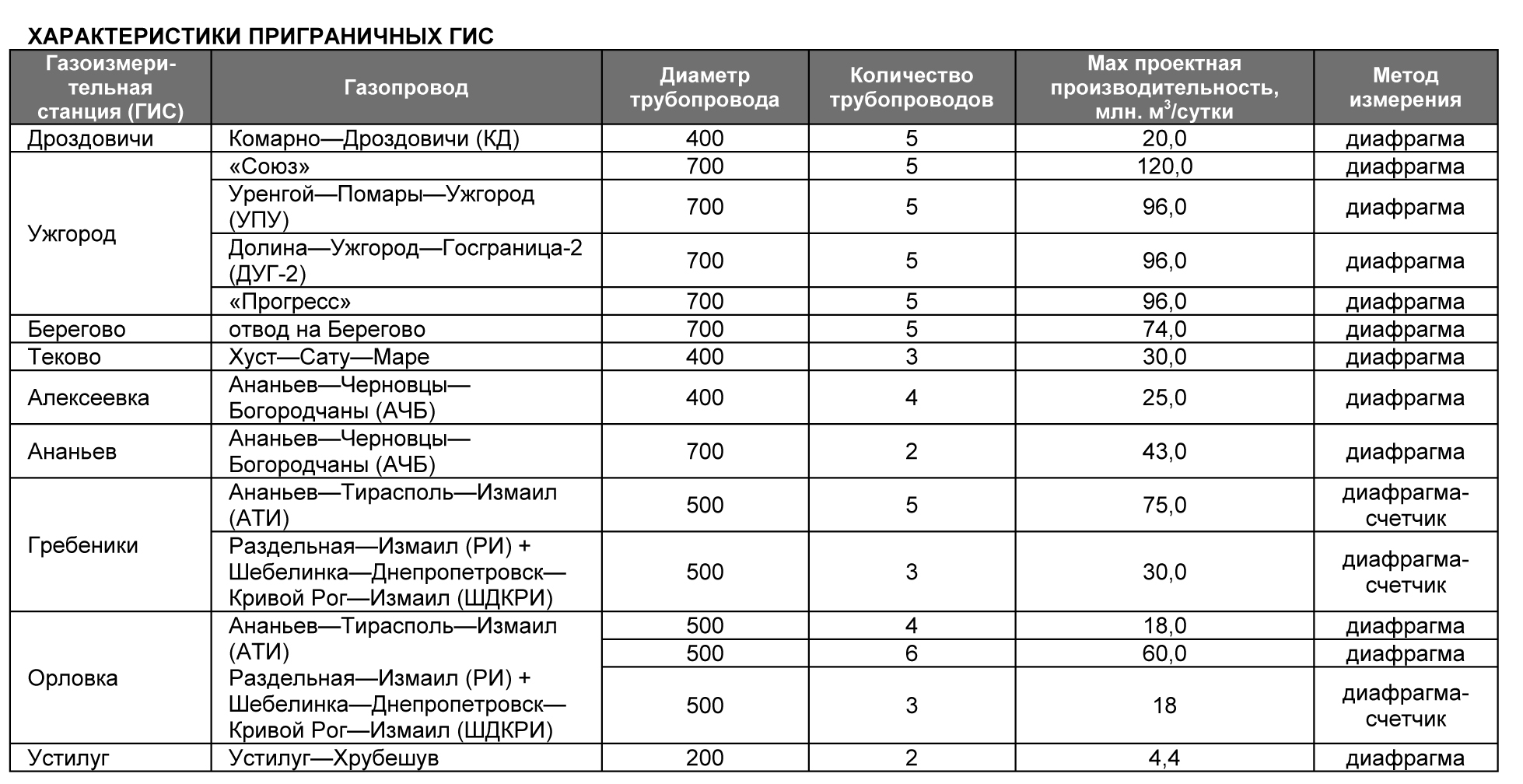 Измерение количества и качества газа, поступающего в ГТС Украины, производится на 11 приграничных ГИС и трех на территориях Беларуси и Молдовы. Количество и качество газа, экспортируемого в Европу, измеряется на восьми приграничных ГИС и в 22 пунктах замера в принимающих газ странах.