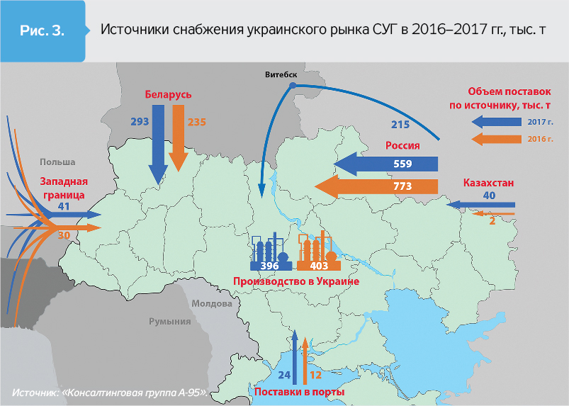 В 2018 г. Украина заметно увеличит объем прогнозированных поставок, которых так не хватало летом 2017 г. Поставки по терм-контрактам из России, Беларуси и Казахстана уже видятся на уровне 40–50% потребностей украинского рынка. Вторую половину обеспечат украинские заводы и "экзотический" импорт.