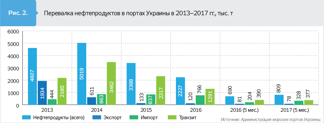Самая сложная ситуация с транзитом нефти. Если в довоенном 2013-м было 1,4 млн т, то в 2016-м прошло всего 85 тыс., а за пять месяцев 2017 г. - 79 тыс. т. Для понимания, это всего один средний танкер. И это эквивалент нуля.