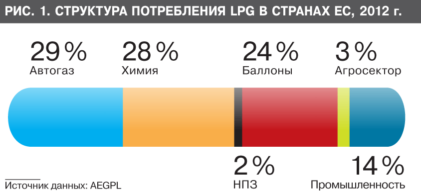 прошлый год в баки европейцев было заправлено около 9 млн т LPG, что составило 29% общего баланса. Таким образом, в 2012 г. автомобильный сектор стал самым крупным в европейской структуре потребления и, по предварительным данным, в 2013-м тенденция укрепится.