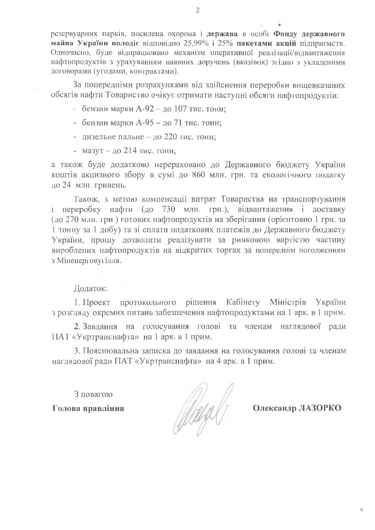 Начнем с того, что согласно обнаруженной в архивах справке, по состоянию на 31 декабря 2012 г. объем технологической нефти на балансе "Укртранснафты" составлял 1,89 млн т. А в своем первоапрельском письме г-н Лазорко пишет о 1,35 млн т. Почти треть объема куда-то "испарилась".
