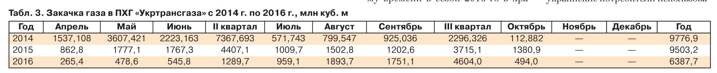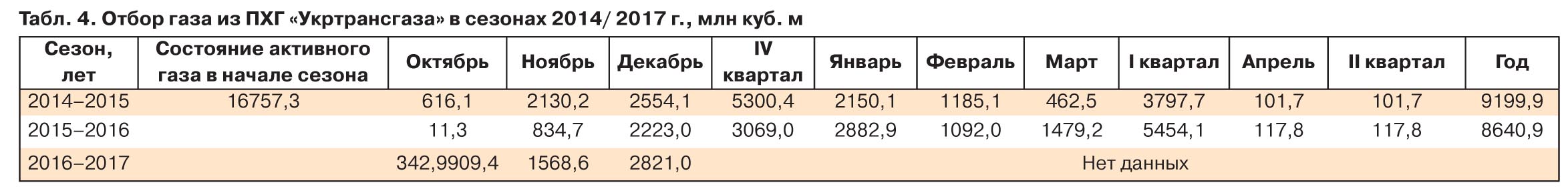 К началу отопительного сезона 2016–2017 гг. в подземных хранилищах "Укртрансгаза" был сформирован запас газа в объеме 14,7 млрд кубометров. 16 октября 2016 г. начат сезон отбора газа из ПХГ. К этому времени в сезон 2016-го в хранилища было закачано 6,3 млрд кубометров природного газа.