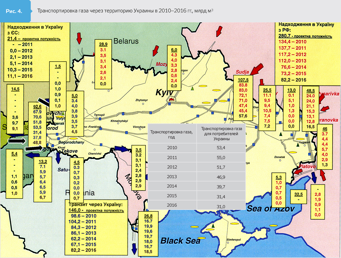 "Газпром" воспользовался минимальным временным лагом и успел закачать по этому маршруту максимум возможного. При этом в Европе никто не возражал. Кроме Польши. И Украины, транспортировка российского газа через ГТС которой начала сокращаться еще в конце ноября - начале декабря 2016 г. А доход от транзита, даже сократившегося в последние годы (до 73,2 млрд кубометров в 2015 г. и 76,6 млрд в 2014 г.), - это около 2 млрд долл., зарабатываемых "Укртрансгазом". Разве что в 2016-м транспортировали 82,2 млрд кубометров российского газа. Но превысить 100 млрд кубометров в год, как это было до 2013-го, этот показатель вряд ли сможет (см. рис. 4). Так что надо искать варианты загрузки своей газотранспортной системы. Хотя делать это крайне сложно при таком-то "северопоточном" давлении "Газпрома" на Европу и стремлении российского монополиста максимально обойтись, так сказать, своими газотранспортными силами, без государств - транзитеров российского газа, какими являются Польша и Украина.