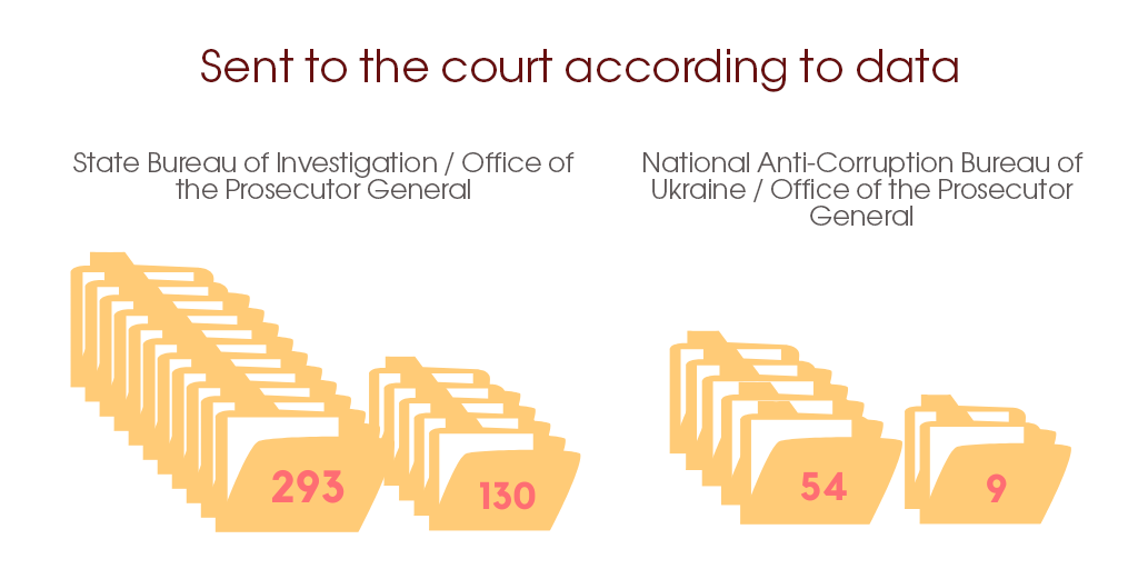 According to NABU, detectives sent 54 criminal proceedings to the court with an indictment regarding corruption and corruption-related criminal offenses. However, according to the Office of the Prosecutor General, only nine such proceedings have been sent to court. A six-fold error!