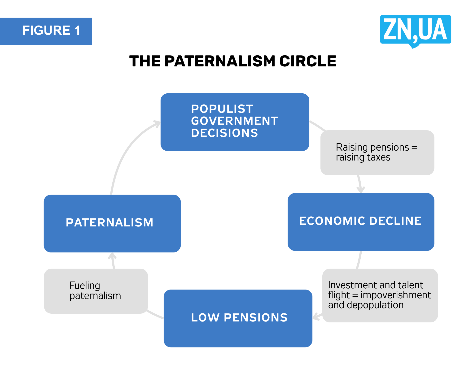 Low pensions are the result of past decisions by the governments we ourselves elected—governments chosen because of society’s lack of critical thinking and economic literacy. We are now trapped in a vicious circle of paternalism and decline (see Figure 1).