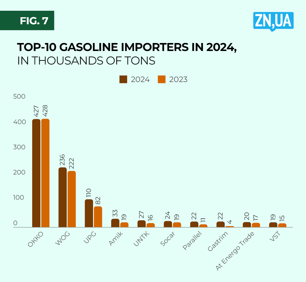 There were also losses. Privat Group, BRSM-Nafta and Anvitrade left the top ten gasoline importers.