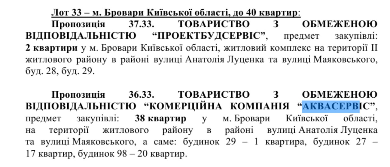 They had a common field of activity before. In 2015–2017, Reznikov headed the Kyiv City Council, and Shapovalov took care of construction issues as a deputy and adviser to the head of the Kyiv Regional State Administration. It was then that Reznikov's son-in-law Dmytro Shteinhaus started a gigantic residential development in Brovary near Kyiv, receiving 80 hectares for it. And already in 2018, Steinhaus through his company "Aquaservice" offered the Ministry of Defense of Ukraine to buy 38 apartments from him in Brovary (see screenshot from the website of the Ministry of Defense of Ukraine).