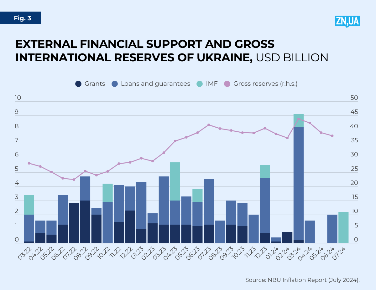 As of August 1, the level of international reserves stood at $37.2 billion. The NBU expects that the downward trend in international reserves will gradually decline by the end of the year, and that their level will remain sufficient to ensure the stability of the FX market (see Figure 3).