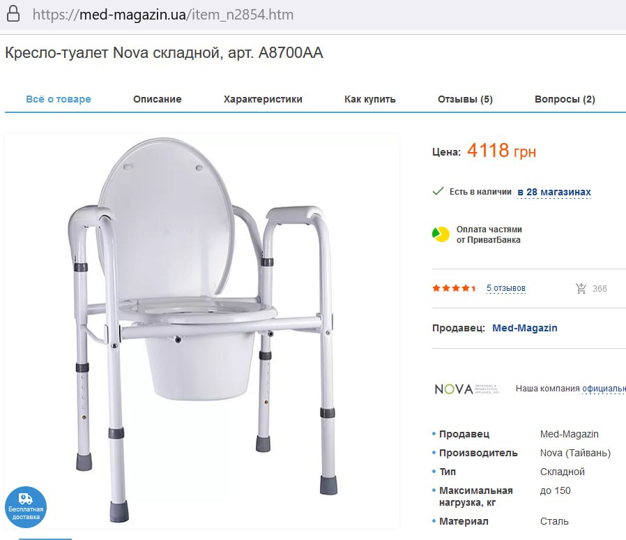 We tried to find at least two of them from one supplier. On the Med-magazin.ua website, we managed to find a folding toilet seat that meets the customer’s requirements (see scan 2).