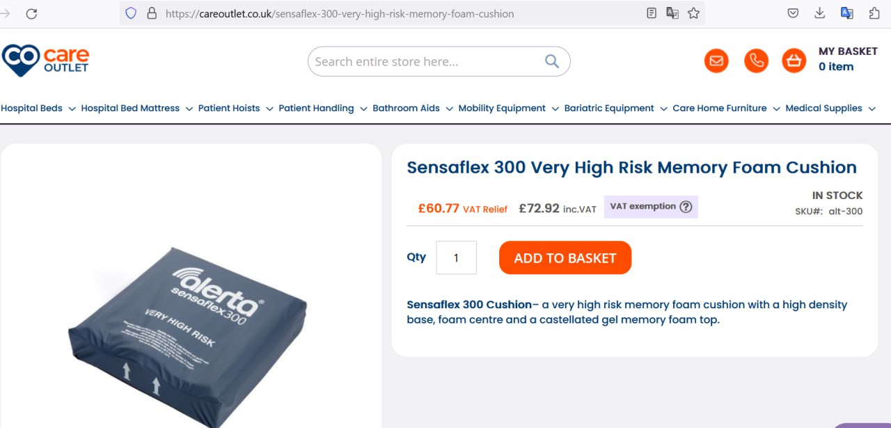 In the same store, there is a section of anti-bedsore pillows. However, it was not possible to find a single pillow for use with bedsores that would meet the criteria specified in the purchase. The criteria are as follows: high density base, a foam center and a toothed top made of gel foam with a memory effect size 43x43x6 cm. Even with the possibility of a three-centimeter deviation, such pillows were nowhere to be found. What's more, we couldn't find such a pillow in other stores in Ukraine. But just the right one – with a high density base, a foam center and a castellated gel memory foam top – was found on a British website (see scan 3).