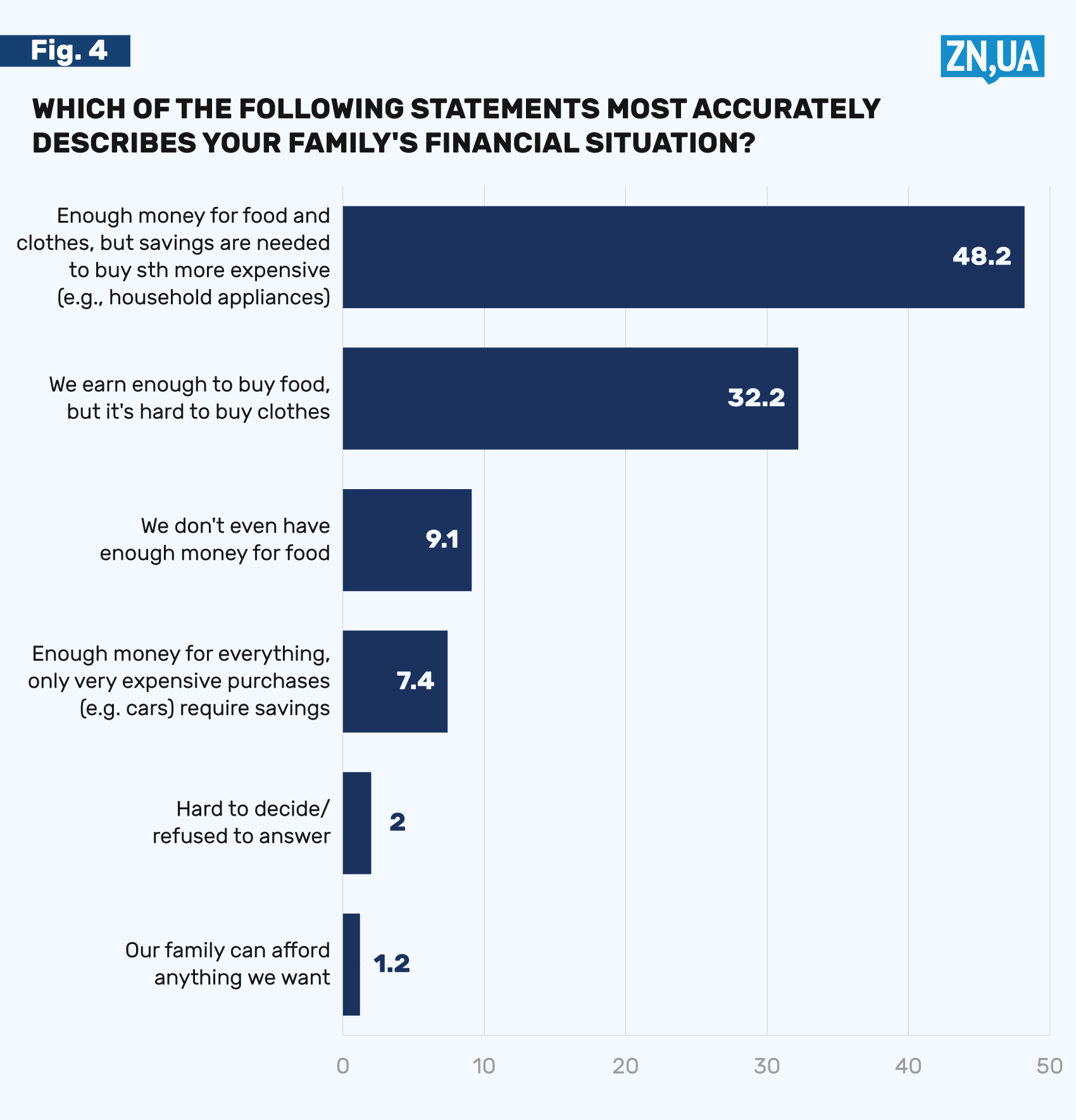 Yes, we remember that Ukrainians are not braggarts and would rather be poor, but 9% of families that do not have enough money even for food, as well as 32% that have enough for food only, is a very sad result.