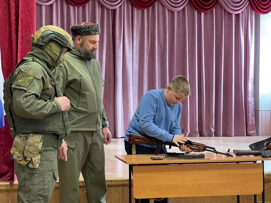 Since the first years of the occupation, military training classes, characteristic of Soviet education, have been returning to Crimean schools, where teenagers are taught how to handle weapons. Children are involved in the preparation of thematic events for Russian military holidays: February 23 (Defender of the Fatherland Day) and May 9 (Victory Day). Meetings with veterans are becoming regular, with participants of the Soviet invasion of Afghanistan and the war in eastern Ukraine replacing World War II veterans. Today, they have been replaced by “heroes of the special military operation” who tell children about their own “exploits” in the fight against the “Ukranian Nazis.”