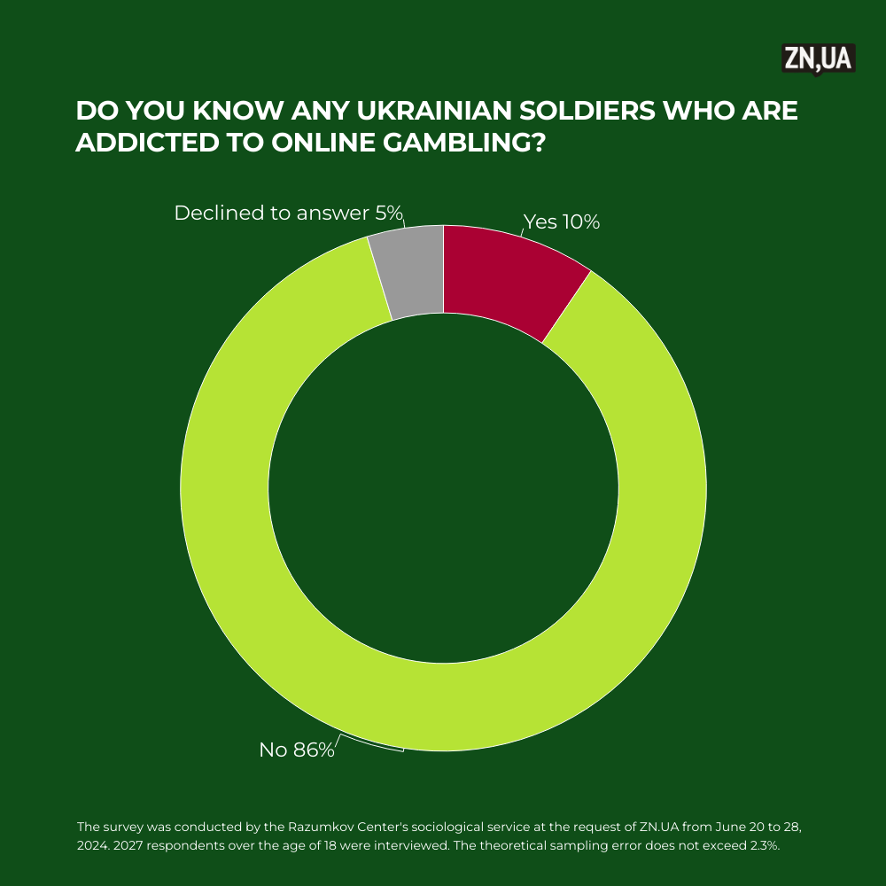 — To the question of ZN.UA “Do you know any soldiers of the Armed Forces of Ukraine who are fond of online gambling?”, only 10% of respondents answered affirmatively. What does this mean?