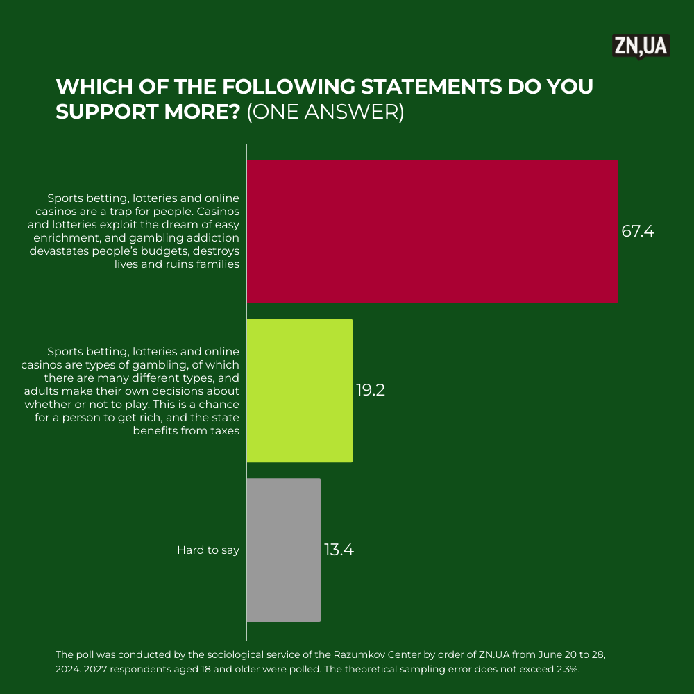 By order of ZN.UA, from June 20 to 28, the Razumkov Center conducted a sociological survey and tried to create an objective picture from the answers of respondents who were asked quite direct questions about the spread of gambling addiction. And, you know, it turned out that in our country there are several important problems that we need to think about and then solve together. And both society and the authorities should take part in this process.