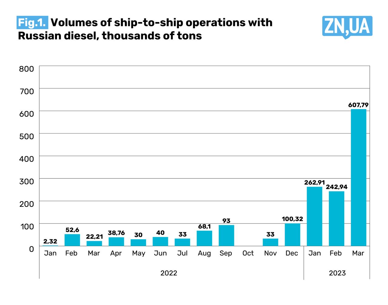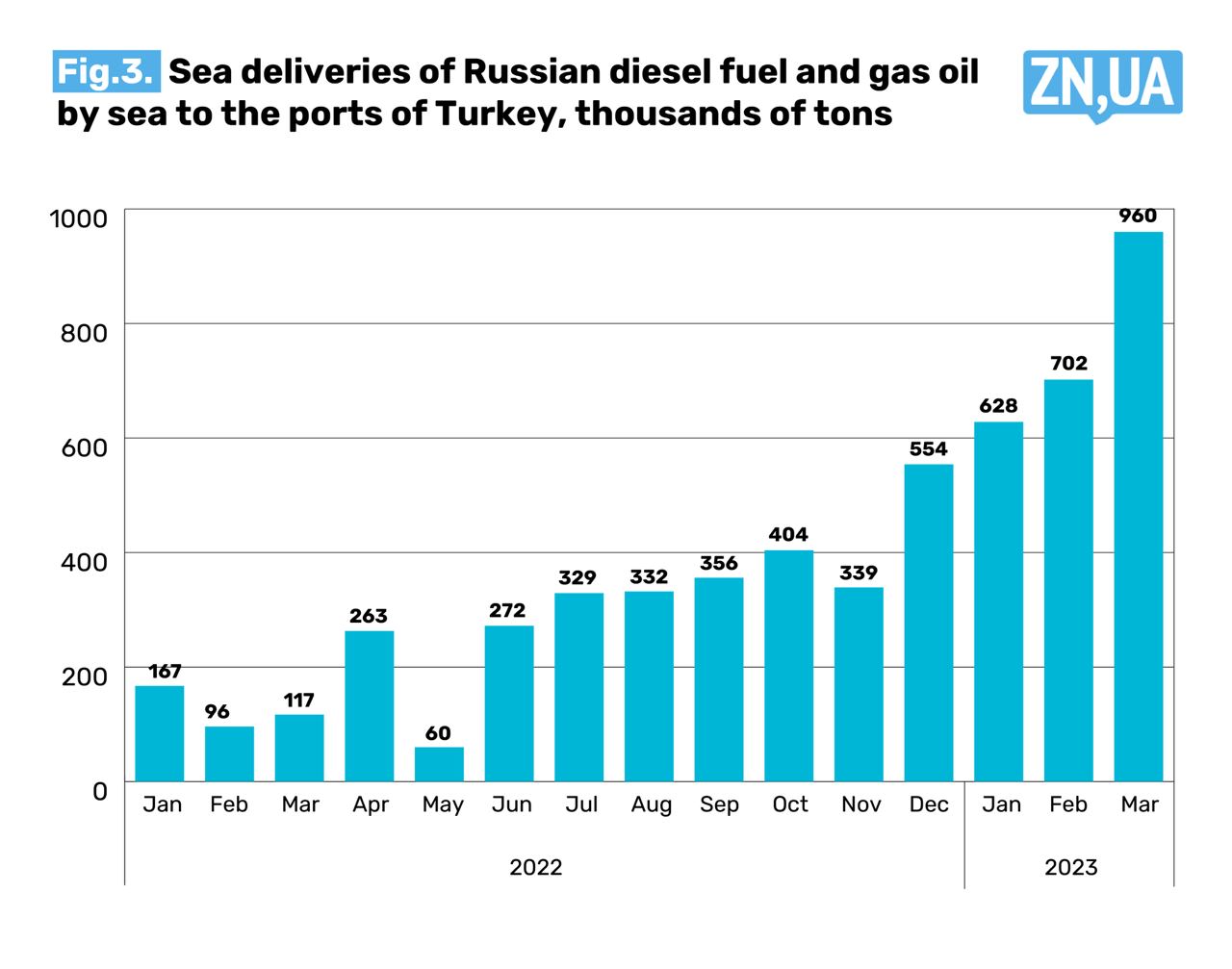 Not being able to unload in Europe, the ships go to sea terminals in Turkey, Saudi Arabia, UAE, Morocco and other countries. In a few months, the small shipments of diesel sent from Russia to these countries grew and turned into incredibly large ones (see Fig. 1).