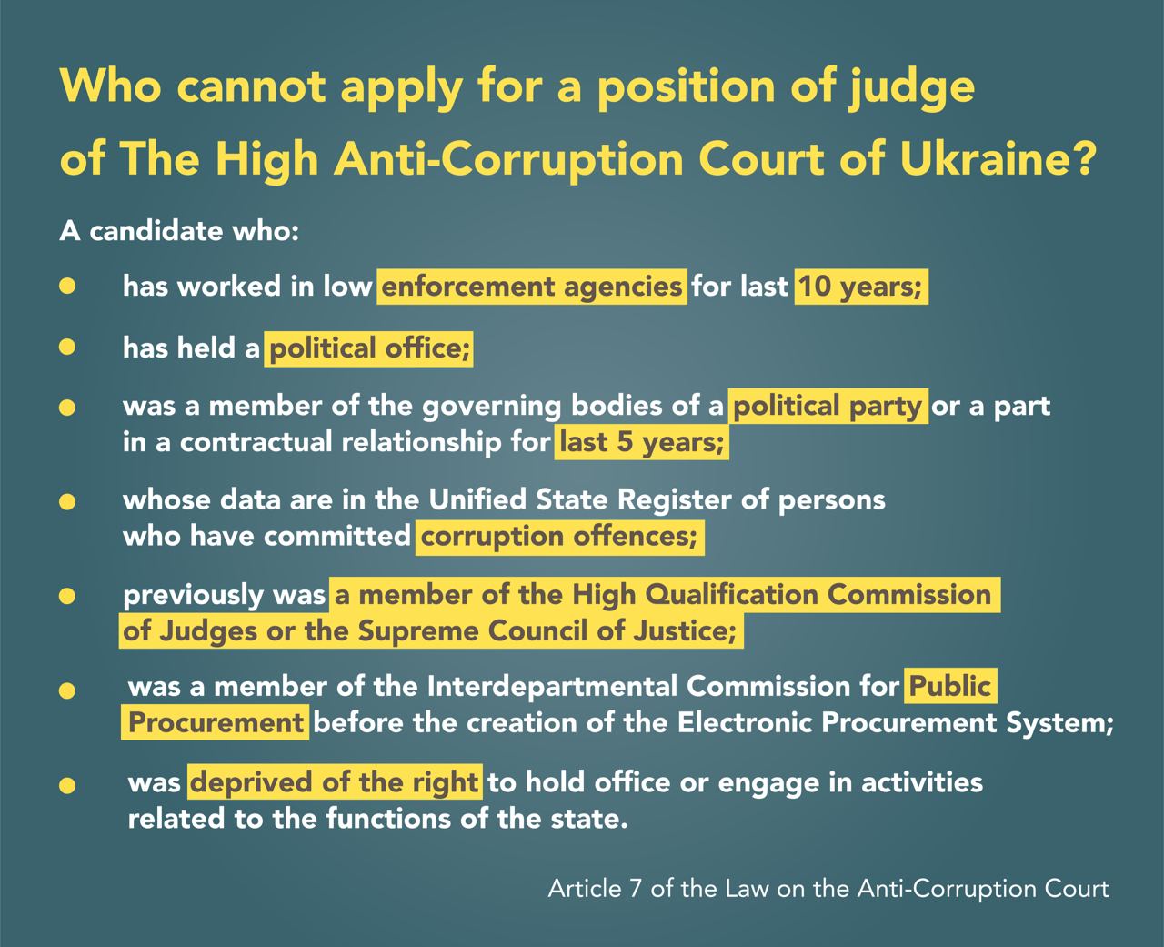 Even then, such general positive conclusions were already dramatically different from the critical remarks of professional Ukrainian public. Without thorough comparison with the national practice of the past, based on a simplified and often openly populist understanding of the most ambitious staff procedures in the judiciary, HQCJ was mercilessly criticized. However, it was the conclusions of the international partners that helped to launch the next important staff project – the competition to the High Anti-Corruption Court.