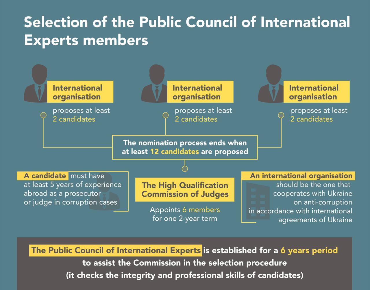 After reasonably lengthy and meaningful discussions with international partners from the EU, the US and the IMF, Ukraine made a political decision followed by the Law on the High Anti-Corruption Court (HACC) adopted on June 7, 2018. The condition for holding the competition to HAAC in accordance with the law was the formation of the Public Council of International Experts (PCIE).