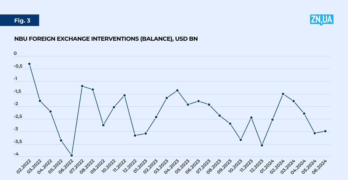 It is worth noting that the trend toward hryvnia devaluation began in March 2023, and the NBU’s foreign exchange interventions have again reached their peaks: now the reserves are being “burned” almost as much as in the summer of 2022 and late 2023: about $3 billion a month.