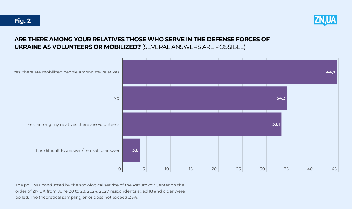 "Are there among your relatives those who serve in the Defense Forces of Ukraine as volunteers or mobilized?" asked ZN.UA.