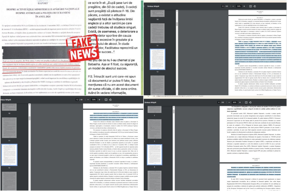 На днях ряд англоязычных и испаноязычных аккаунтов, связанных с россиянами, начали разгонять информацию об окончании обучения украинских авиаторов в Фетеште. Однако вроде бы из-за отказа учить английский язык, слабой физической подготовки и проблем с алкоголем лишь несколько человек смогли успешно закончить обучение. В доказательство своих слов фейкоробы показали «отчет» от Министерства обороны Румынии, однако документ оказался подделкой.