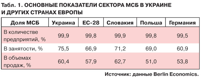 Лишь 5% МСБ - это собственно предприятия, вносящие вклад в экономический рост. В этом и заключается основная причина того, что при сопоставимости показателей украинского и европейского секторов МСБ другие экономические параметры, тот же ВВП, отличаются разительно.