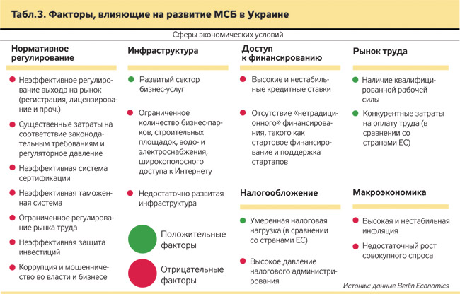 Украинский малый и средний бизнес по сравнению с европейским растет намного медленнее. И это очень опасная тенденция, так как экономический эффект от работы малых предприятий как таковых относительно невысок: в большинстве своем они не создают достаточного количества новых рабочих мест, не развивают технологии, не стимулируют экономические изменения. Все это возможно лишь в перспективе, когда малые предприятия "растут". Долговременные (на периодах свыше