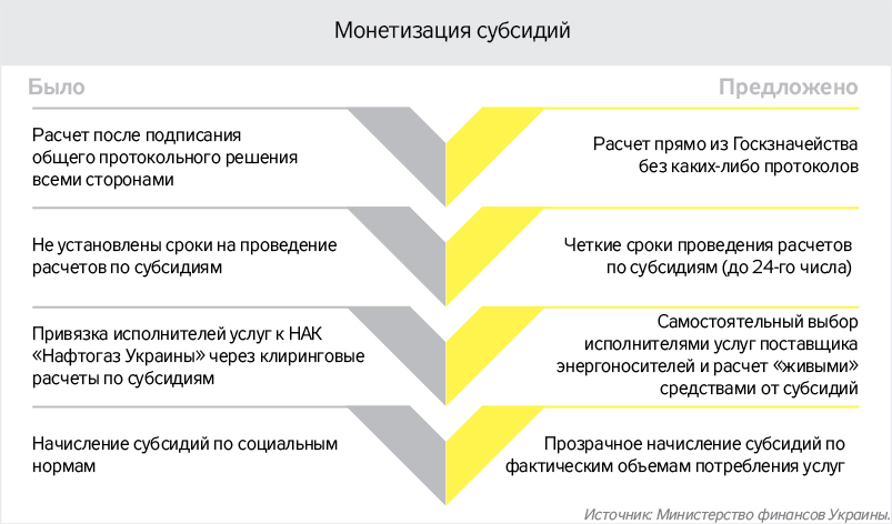 Наработки в направлении реформирования системы государственных возмещений были и раньше, но мы ставили цель разработать эффективный и действенный механизм перехода на денежные расчеты по субсидиям. Минфин разрабатывал его совместно с экспертами и нашими международными партнерами. А это сложный и длительный процесс, требующий значительных усилий. Мы планировали успеть к началу отопительного сезона, но много времени понадобилось для согласования этого шага с другими министерствами. И работа продолжается. Сейчас проект постановления правительства об усовершенствовании системы финансирования жилищно-коммунальных субсидий уже обнародован для обсуждения, и мы ожидаем фидбека от всех заинтересованных сторон, чтобы найти оптимальный вариант для нашей страны.