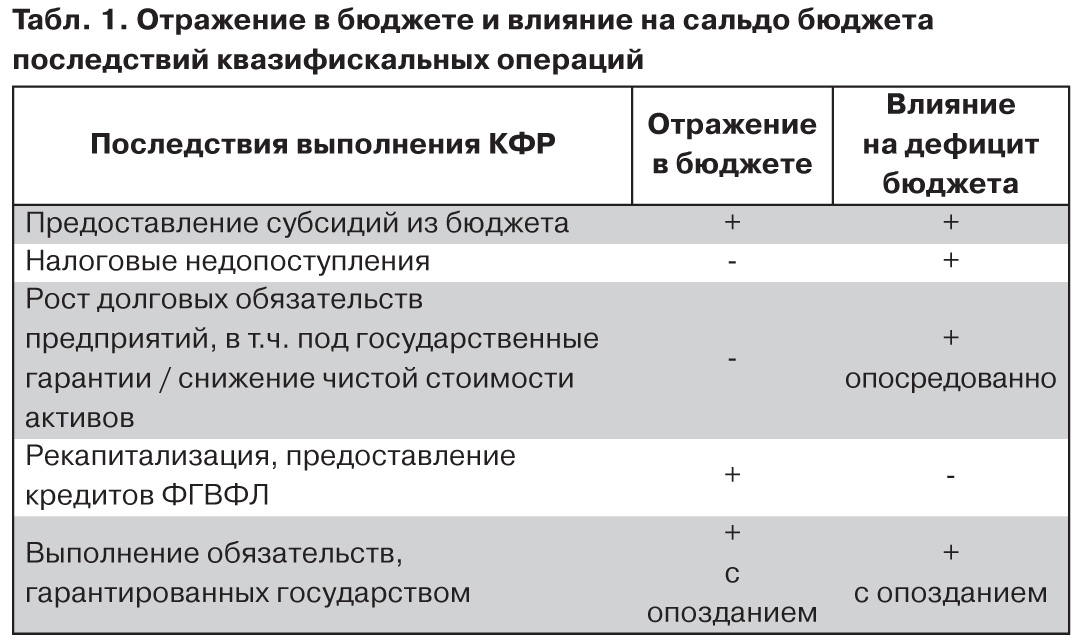 Как уже отмечалось, пристальное внимание общества, международных финансовых организаций и кредиторов к показателям устойчивости госфинансов, в частности таким, как дефицит бюджета и объемы долговых обязательств, заставляет правительство делегировать своим "сателлитам" - внебюджетным учреждениям или государственным корпорациям - все больше фискальных операций, прямое отражение которых в казначейском балансе приводит к ухудшению вышеупомянутых показателей. Такие операции называются квазифискальными расходами (КФР).
