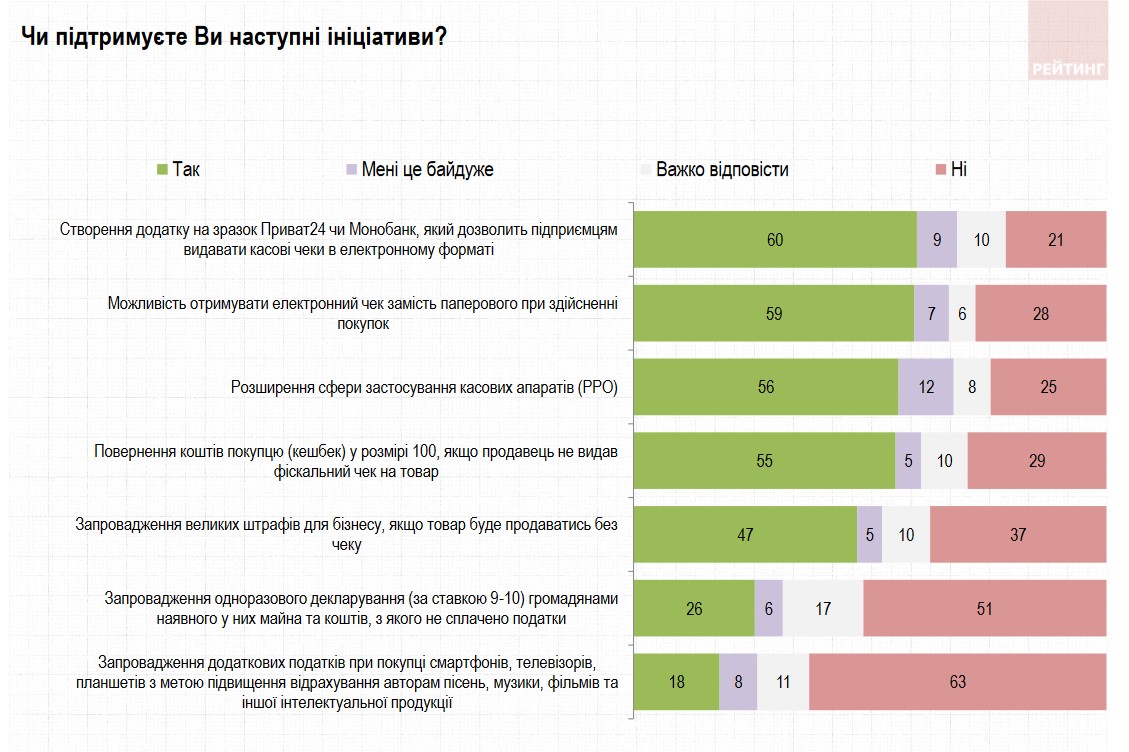Еще одно наблюдение, заслуживающее внимания: 53% респондентов считают, что расширение количества отраслей, обязанных выдавать фискальные чеки, приведет к наведению порядка в сборе налогов, и только 33% (преимущественно это люди, имеющие собственное дело) уверены, что это усложнит ведение бизнеса. Так что изменения продиктованы временем, и от них бесполезно прятаться.