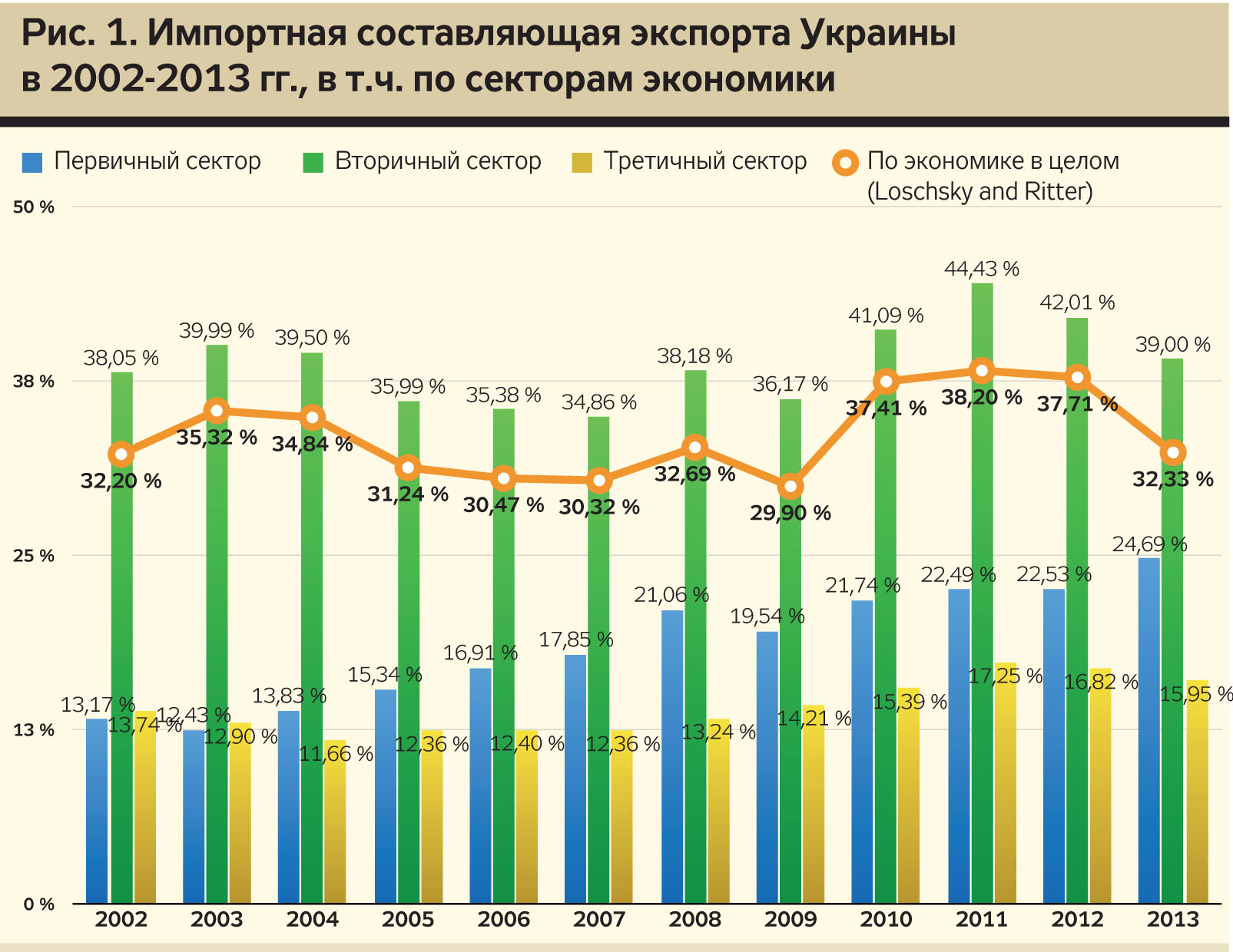 В идеале для экономики хорошо, когда все экспортные товары производятся с использованием отечественного сырья и технологий. Высокая импортная зависимость украинского экспорта, с одной стороны, оказывает давление на его цену, а с другой - связывает руки правительству в контексте использования традиционных протекционистских механизмов. Такое ценовое давление (а особенно в условиях нынешнего валютного кризиса) может нивелировать ценовой эффект сокращения ставки ЕСВ для украинских товаропроизводителей.