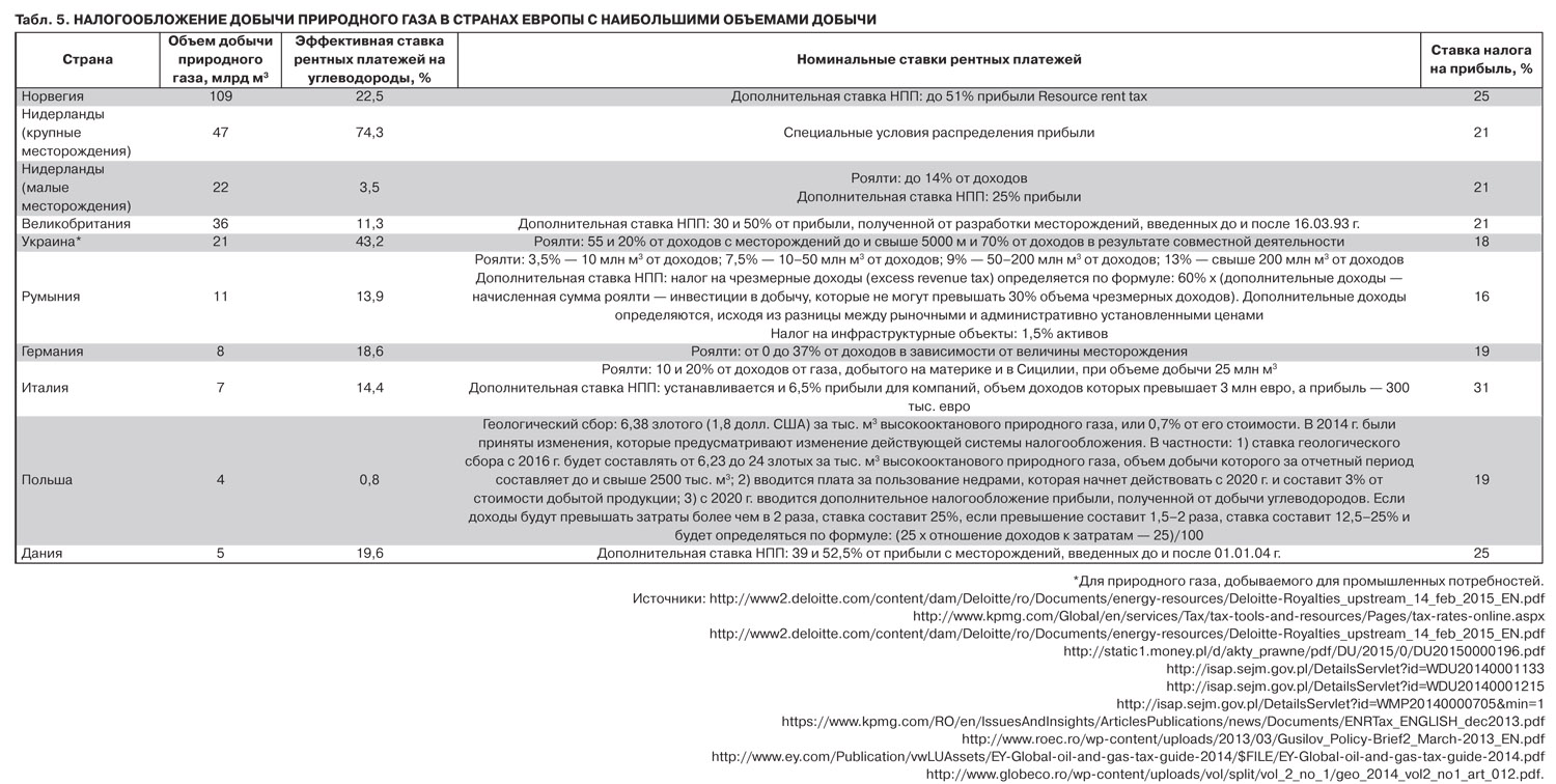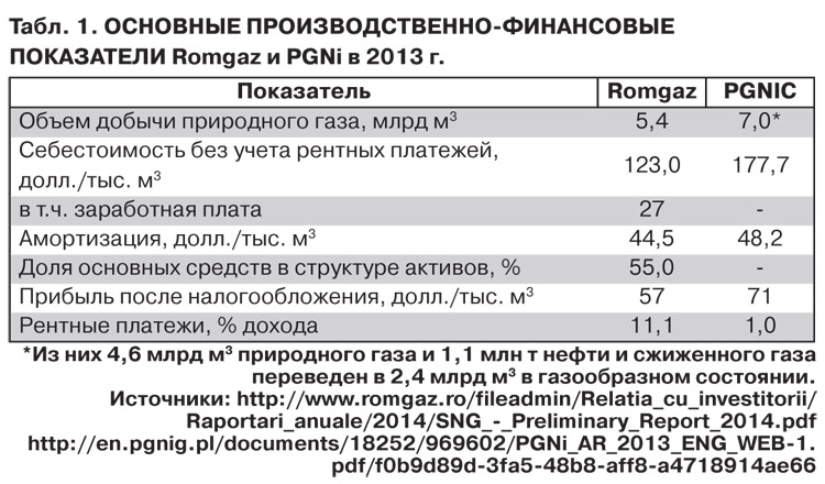При определении второго, влияющего на долю ренты, фактора - прибыли от добычи газа - также будем исходить из вышеприведенных данных: для добычи 15,1 млрд кубометров УГД использует основные средства на сумму 4,4 млрд долл. Допустив, что доля основных средств в структуре активов составляет 60%, а доходность активов - 13%, получаем, что необходимая прибыль после налогообложения должна составлять 63 долл./тыс. кубометров. Для сравнения: в двух самых крупных государственных добывающих компаниях Румынии и Польши - Romgaz и PGNiG в 2013 г. этот показатель составлял соответственно 57 и 73 долл. за тысячу кубометров.