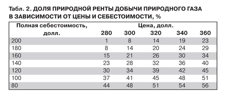 Поэтому решение правительства о повышении ставки за пользование недрами было обоснованным, вопрос в том, насколько и каким образом она должна была увеличиться с учетом изменчивости цены природного газа и необходимости стимулировать инвестиции в разведку запасов. В условиях высоких цен импорта природного газа, как это имело место в 2013–2014 гг., такая схема обеспечивала достаточную рентабельность для газодобывающих компаний, затраты которых ограничиваются собственно себестоимостью добычи. Однако при наблюдаемых сегодня более низких ценах - 280 долл./тыс. кубометров доля природной ренты в лучшем случае не превышает 44%.