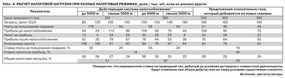 В таких условиях при средних затратах добычи газа в новых скважинах в 160 долл./тыс. кубометров уровень налоговой нагрузки составит 25% и будет находиться на среднем уровне среди других стран, не богатых залежами природного газа. По примеру самых прогрессивных в налогообложении добычи углеводородов стран (Норвегии, Великобритании, Дании) можно было бы полностью определить объектом налогообложения рентной платой прибыль предприятия. Это позволило бы в большей степени учитывать особенности уровня затрат на конкретных скважинах и месторождениях. Но, с другой стороны, существует большой риск, что отечественные умельцы используют эту схему для "оптимизации" налогообложения за счет заказа услуг у связанных лиц-нерезидентов.