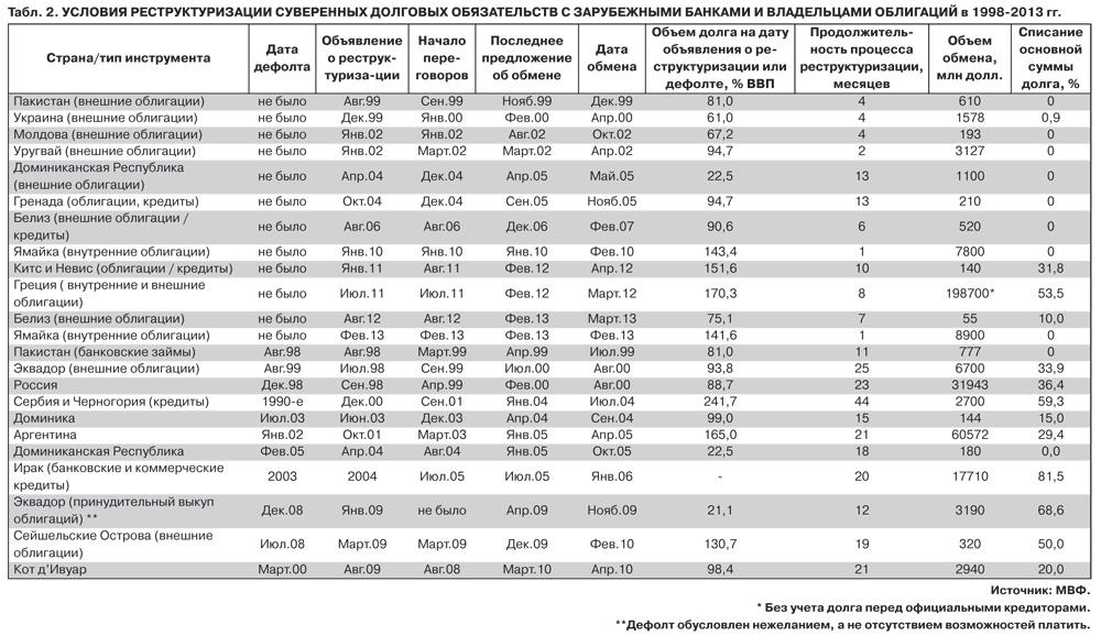 В этом контексте следует понимать, что последствия дефолта по разным видам долговых обязательств отличаются. Как правило, снижение номинальной суммы долга происходит в том случае, если кредиторы осознают, что выгоды заемщика в результате экономии реструктуризации, осуществляемой после дефолта, превышают потери заемщика.