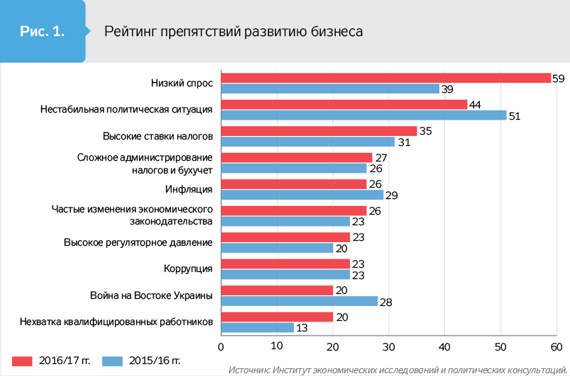 Но нехватка квалифицированных работников как препятствие для развития МСП, вес которого увеличился за год почти вдвое, - это сигнал о более глобальных явлениях, происходящих в украинском обществе. Речь идет о качестве и образования, и профессиональной подготовки в целом, в некоторых случаях можно говорить об отсутствии системы подготовки кадров нужной специальности и квалификации. Вместе с тем это сигнал, свидетельствующий об активизации оттока кадров за границу, где лучше бизнес-климат, где меньше препятствий и нет украинского чиновника-хапуги. По нашим оценкам, важность проблемы нехватки кадров необходимой квалификации отличается от области к области. Например, если для Львовской области эта проблема четвертая в рейтинге препятствий, и почти треть опрошенных считают, что это препятствие, то для Киевской области, являющейся сердцем столичного региона, куда стекается значительное количество рабочей силы страны, эта проблема находится только на десятом месте, и всего 10% опрошенных считают это препятствием. Замечу, что в перспективе 2–3 лет нехватка кадров требуемой квалификации - это уже тот вызов, на который необходимо обратить особое внимание. По результатам многих исследований, квалифицированные кадры были всегда одним из конкурентных преимуществ нашей страны, поэтому можем потерять такое преимущество.