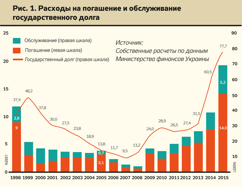 Достижение договоренности с частными кредиторами о реструктуризации внешних обязательств украинского суверена, о котором еще и не сообщили официально, но уже широко освещают в СМИ, не должно стать поводом для самоуспокоения. Ведь глубинные причины, по которым на протяжении последних лет долговая нагрузка на государственный бюджет Украины росла настолько высокими темпами (которые и привели к сползанию к фактической невозможности наших госфинансов выполнять свои обязательства в полной мере), не устранены. Можно ожидать, что в 2015 г. уровень долга сектора общего государственного управления (СОГУ) составит 84% ВВП (без учета Крыма и оккупированных территорий Донбасса), государственного и гарантированного государством долга - 91% ВВП, в том числе государственного - 78% ВВП. Выплаты по погашению и обслуживанию госдолга вырастут до19% ВВП. Если для развитых стран такие показатели долговой нагрузки допустимы, то для Украины они критичны.