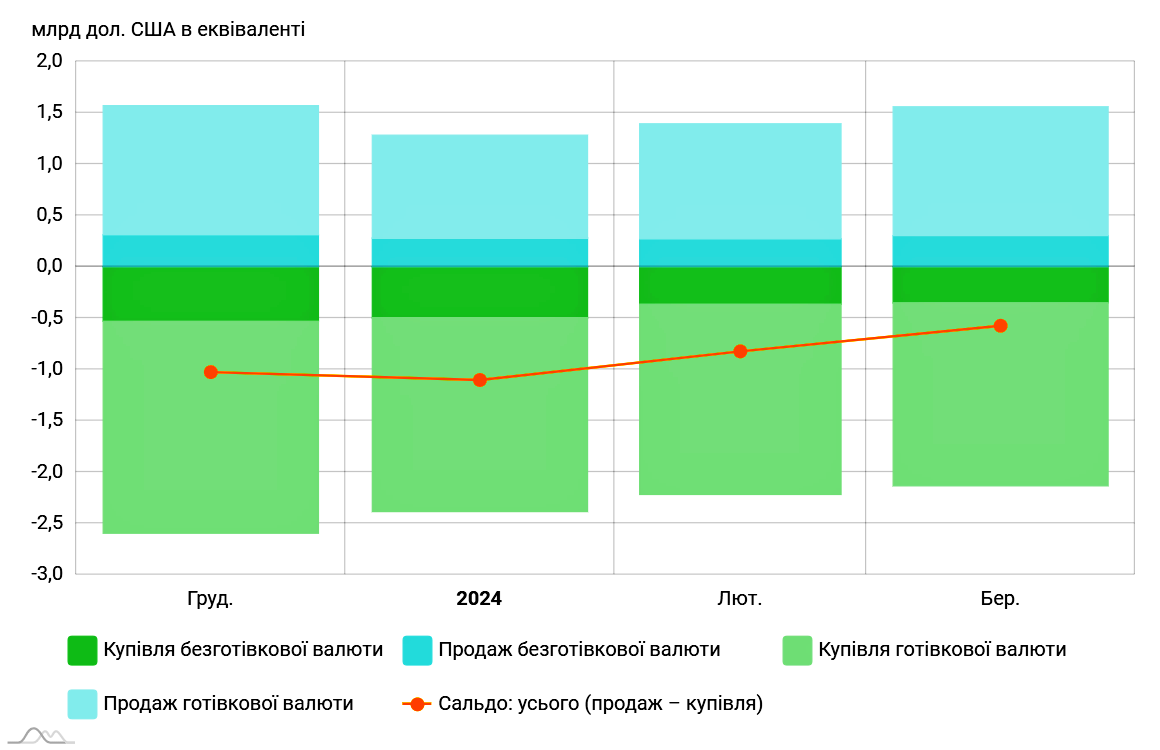 Если детализировать показатели продаж валюты с начала апреля, статистика НБУ указывает на существенное сокращение продаж наличной валюты физлицами до уровня $43,3 млн (по состоянию на 4 апреля) с $52,6 млн на конец марта.
