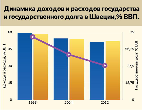 Такой подход применяется, например, в Скандинавских странах. Так, в Швеции полномочия парламента по внесению органами законодательной власти изменений в проект бюджета на стадии его принятия фактически ограничиваются лимитами на ассигнования, которые были приняты парламентом раньше, то есть при утверждении расходной части бюджета используется двухступенчатая система голосования. В первом чтении происходит голосование по каждой из 27 функциональных групп бюджетных расходов. При рассмотрении бюджета во втором чтении каждое предложение об увеличении ассигнований по отдельным подгруппам расходов должно получить большинство голосов для соответствующего уменьшения других ассигнований в пределах той же группы расходов, поскольку функциональная структура расходов бюджета уже была определена в первом чтении. Внедрение этих бюджетных процедур после кризиса 1990-х годов позволило сократить государственный долг с 70% ВВП в 1998 г. до 50% в