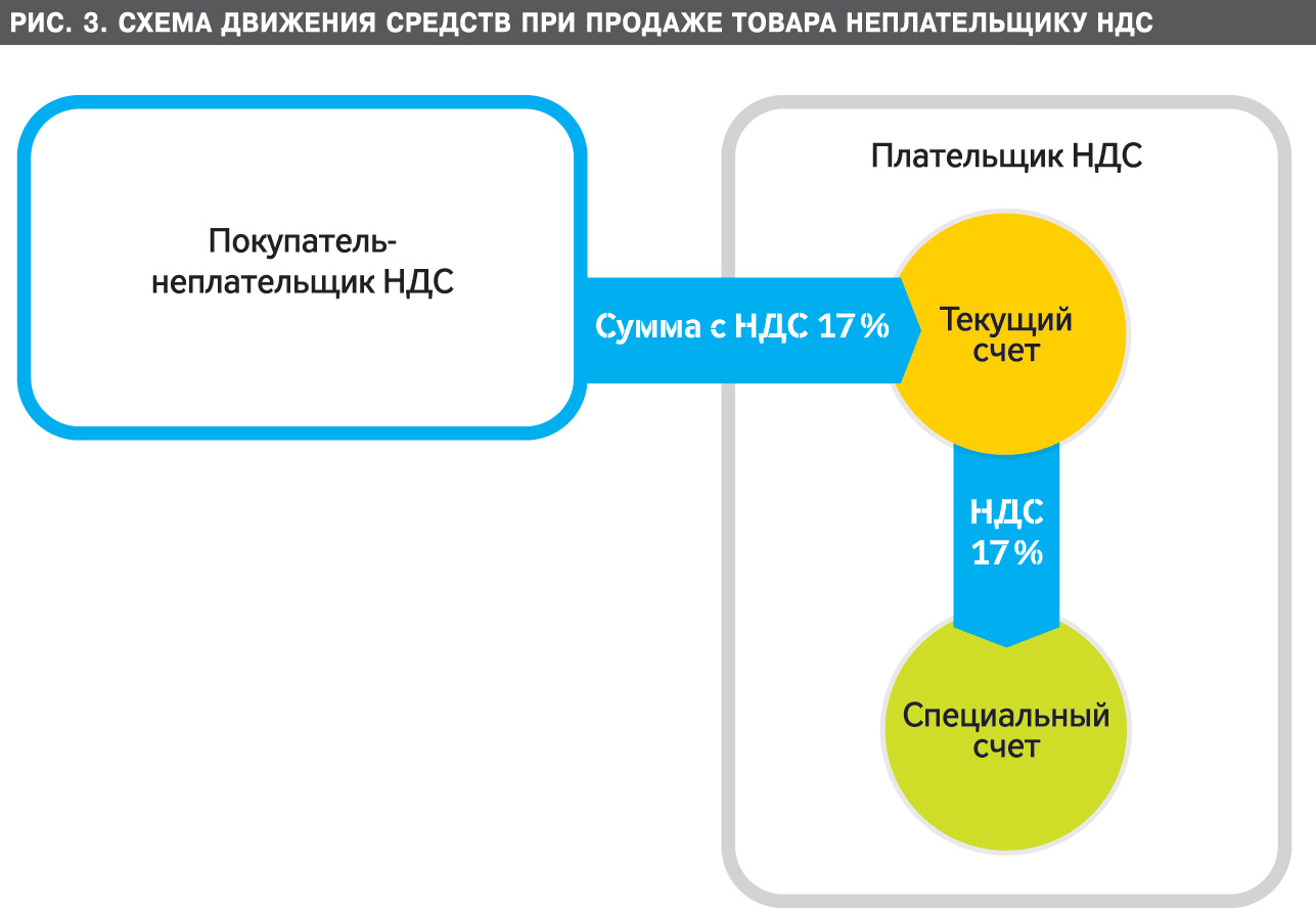 Если товар продается неплательщику, то после получения средств продавец обязан самостоятельно перечислить полученный НДС на свой спецсчет (Рис 3. Схема движения средств при продаже товара неплательщику НДС).