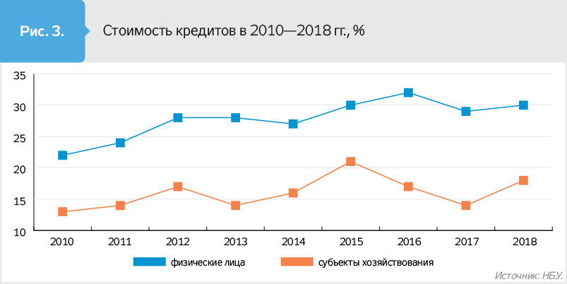 Стоимость кредитов в прошлом году не снизилась, а наоборот, выросла наряду с повышением ставки НБУ (см. рис. 1–4). Соответственно, кредитование за исключением потребительского сегмента было сдержанным.