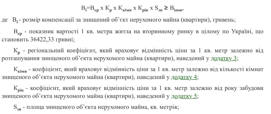 Размер компенсации за разрушенные дом и квартиру будет варьироваться. Кабмин утвердил для этого разные формулы.