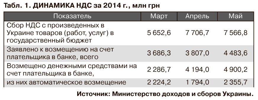 В целом показатель возврата налога за последние три месяца ниже прошлогодних результатов. В марте этого года бизнес получил всего 2,3 млрд грн НДС, в то время как годом ранее - почти 5 млрд грн. Однако уже в апреле объемы возврата выросли почти вдвое - до 4,2 млрд грн (в 2013-м - 4,8 млрд), в мае - 4,9 млрд (5,2 млрд). Примечательно, что в апреле-мае суммы возмещения даже превысили заявки плательщиков (было заявлено 3,8 млрд и 4,5 млрд грн соответственно). При годовом плане в 53,37 млрд грн среднемесячные объемы возмещения должны превышать 5 млрд.