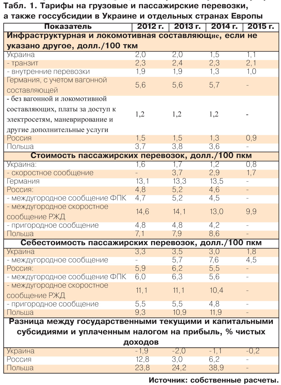 (см. отдельную инфосправку). Сравнительные данные о тарифах на грузовые и пассажирские перевозки, а также о госсубсидиях в этих странах и Украине приведены в табл. 1.