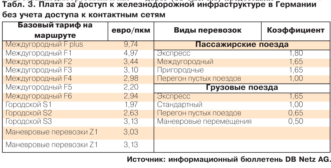 В мировой практике в основном используются смешанные системы ценообразования, часто предусматривающие две составляющие платы за доступ к инфраструктуре: фиксированную - за проезд поезда и вариативную - в зависимости от тоннажа поезда. Услуги инфраструктуры также могут разделяться на услуги по доступу к ж/д пути и к электрическим сетям, по заправке поездов; по содержанию вокзалов и станций, а также по информатизации. Сравнивая стоимость доступа к инфраструктуре для пассажирских и грузовых перевозок, следует отметить, что стоимость грузовых перевозок ниже в тех странах, которые взимают только поездокилометры, - во Франции, Германии, Испании. При этом страны, в которых транзитная составляющая значительна (Нидерланды, Швейцария), кроме расстояния, учитывают также тоннаж поезда, поэтому инфраструктурная составляющая в этих странах для грузовых и пассажирских перевозок приблизительно одинакова.