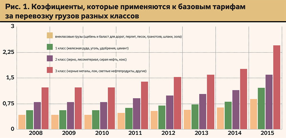 Легче сказать, чем сделать. Перечисленные предложения вызвали жесткое сопротивление инициативам Мининфраструктуры со стороны грузоотправителей, пользующихся льготными тарифами, старой номенклатуры работников УЗ, привыкших ловить рыбку в мутной воде, а также откровенных популистов, которые "за все хорошее и против всего плохого". За восемь месяцев практически ни одна инициатива не приблизилась к реализации. В этих условиях Мининфраструктуры пошло самым легким, но, очевидно, не самым эффективным путем - повышение тарифов для всех грузоотправителей, без устранения дискриминации в разрезе видов грузов. Как показано на рис. 1, для таких грузов, как щебень, песок, железная руда, уголь, удобрения и цемент, на которые приходится до 50% внутренних грузовых перевозок, установлены низкие коэффициенты, за счет чего "Укрзалізниця" осуществляет перекрестное субсидирование производителей и потребителей этих товаров. В свою очередь, владельцы дорогих грузов выбирают альтернативные варианты доставки, вследствие чего УЗ теряет своих лучших клиентов.