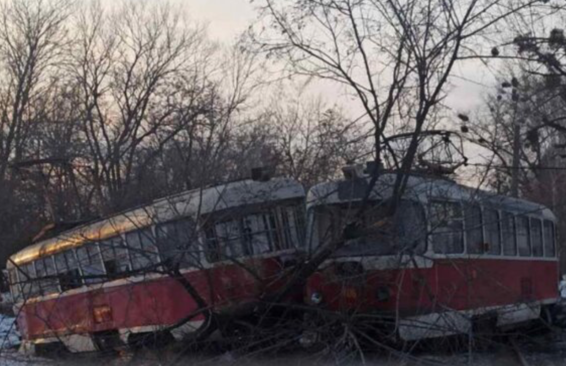 Как и в Днепре, в Харькове трамваи сходят с рельсов. Вот в районе Салтовки трамвай въехал в дерево.